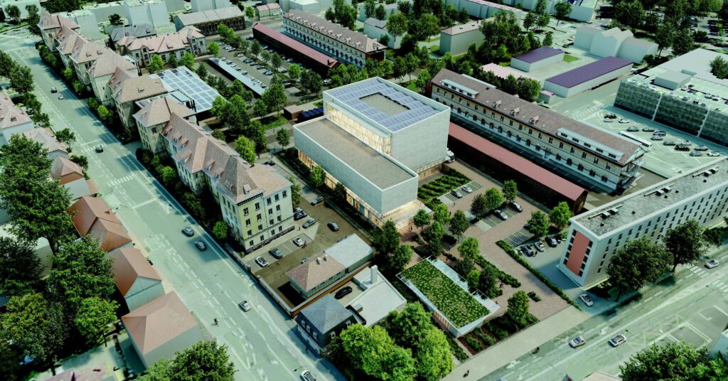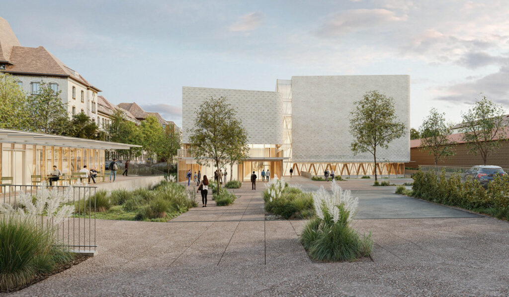 Le projet pour les nouvelles archives d’Alsace incarne bien plus qu’une réponse architecturale fonctionnelle. Il s’agit de créer un lieu qui incarne la mémoire collective, un pont entre le passé et l’avenir, un lien entre des générations de citoyens. À travers une architecture sensible, ancrée dans l’histoire locale, ce bâtiment réinterprète les codes vernaculaires tout en offrant une architecture élégante, efficiente et sensible. Les salles de lecture et d’exposition sont baignées de lumière naturelle, tandis que des outils numériques facilitent l’accès aux trésors archivés. Une grande faille vitrée traverse le bâtiment, reliant visuellement les espaces publics et logistique. Elle symbolise la circulation entre la mémoire protégée et sa diffusion auprès du public.