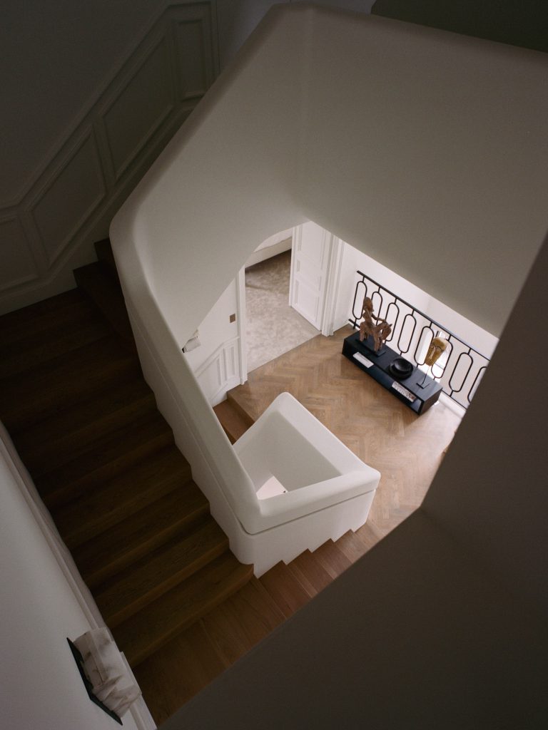 Rénovation complète, aménagements intérieurs d’une maison de maître des années 1930. Une refonte complète de la circulation verticale par un escalier magistral habillé en staff permet de redistribuer la villa et d’en faire le centre névralgique.